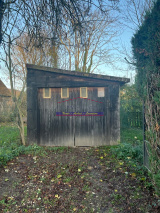 Jardin privatif d'environ 100m², garage en bois.