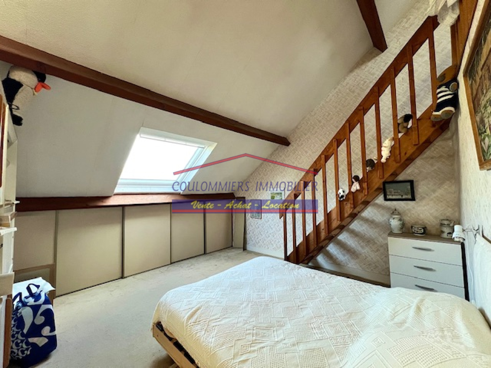 A l'étage : grande salle de jeux, 2 chambres, salle d'eau avec WC.